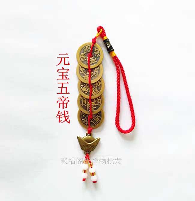 ストラップ工場卸売り元宝六帝銭純銅精品結五帝銭観光地区寺院販売促進ストラップ