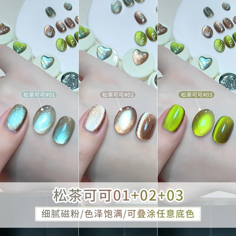 恩妮诗松茶可可猫眼指甲油胶2025新款棕绿陶瓷玻璃珠猫眼美甲专用
