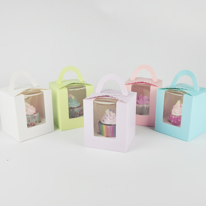 焙煎包装粉青白緑単粒カップケーキ馬芬箱ムース木糠開窓手提げ洋菓子箱
