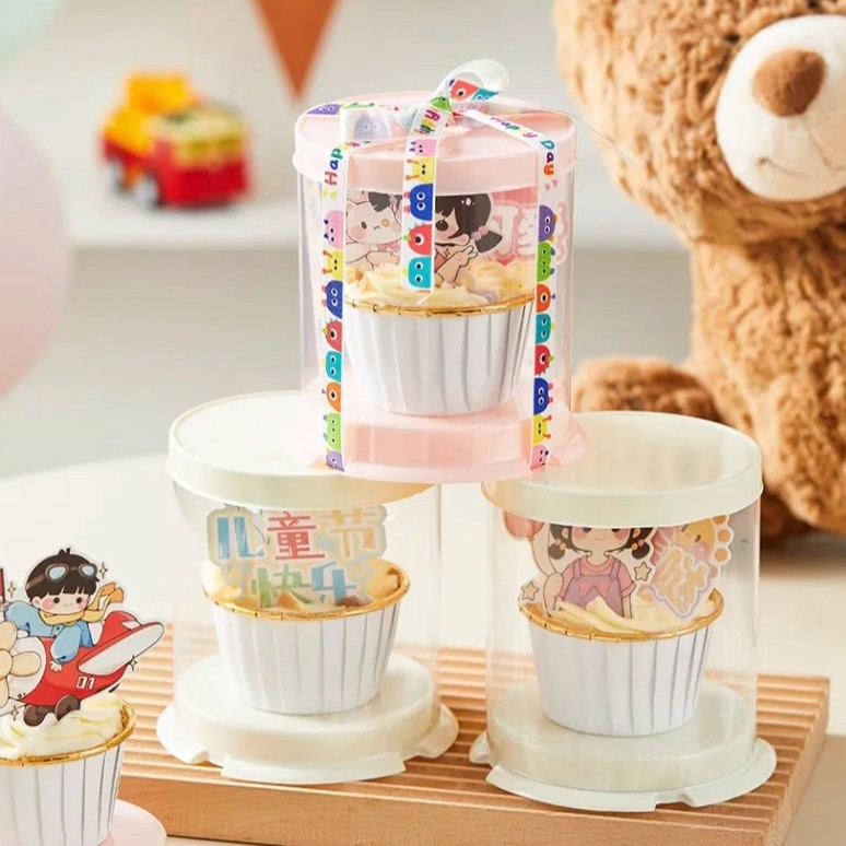 ミニケーキ紙カップ包装箱シングルパック 2inch ラウンドデザートマドレーヌカップケーキ包装箱透明