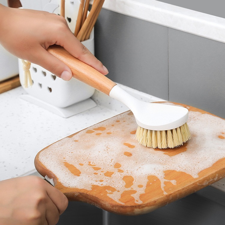 多機能木製ハンドル付き鍋洗いブラシ、毛が抜けない長柄食器洗いブラシ、柔らかい毛の鍋洗いブラシ、鍋洗い神器