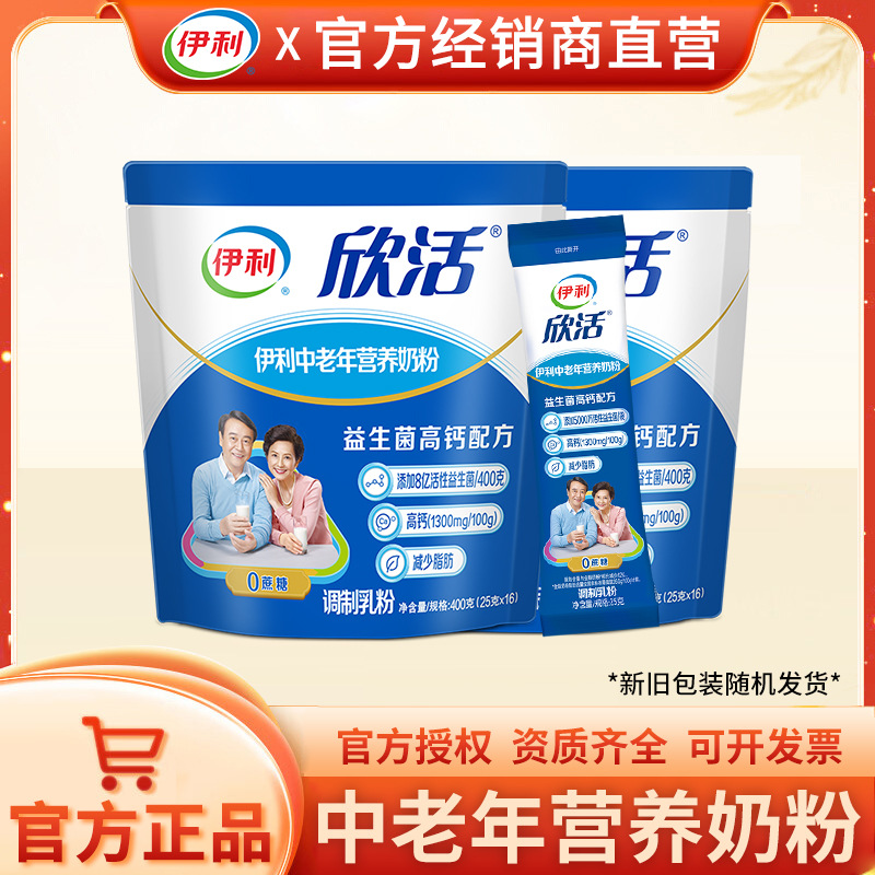 伊利欣活中老年栄養粉ミルク400g袋入り16小条入り益生菌高カルシウム調合牛粉ミルク