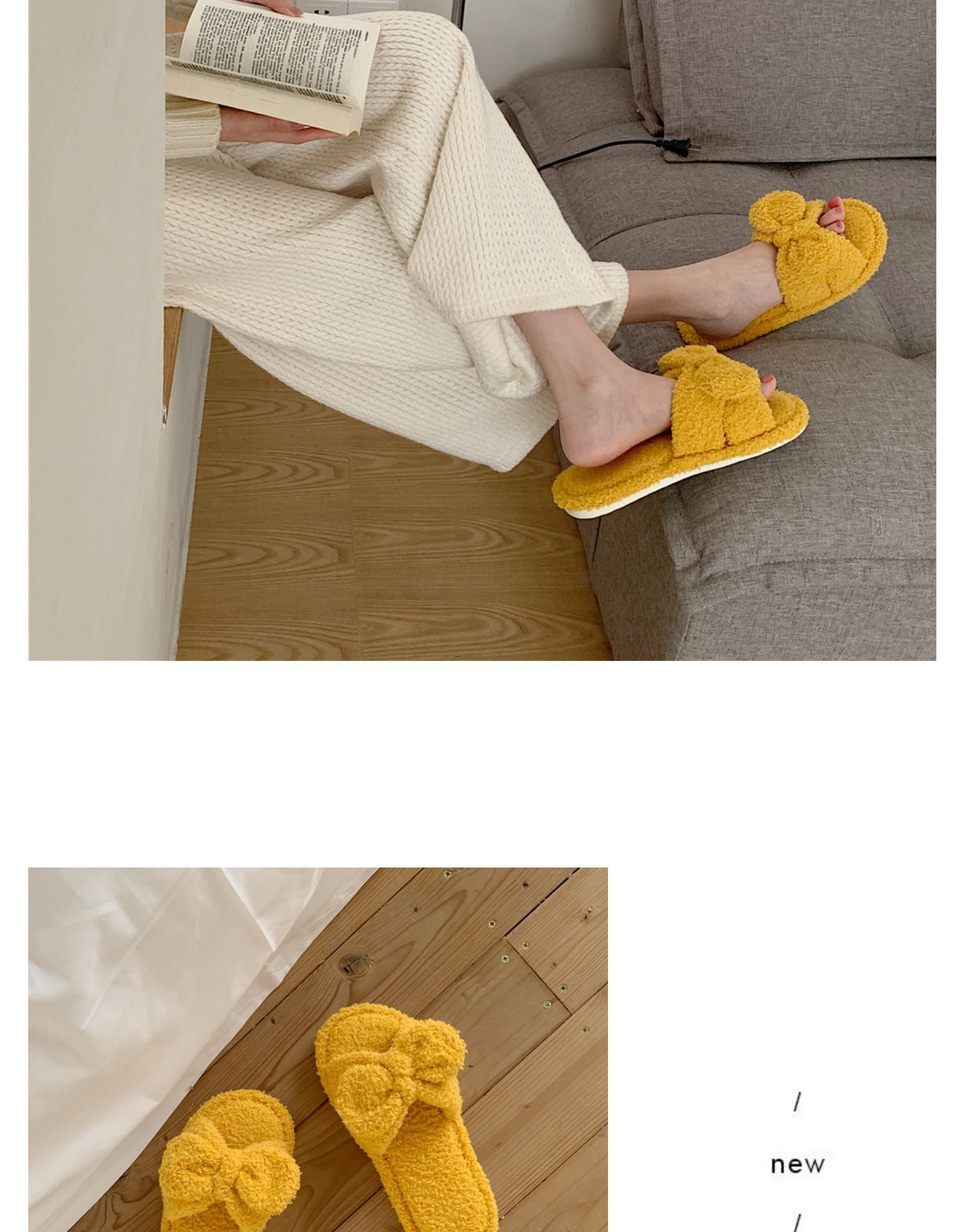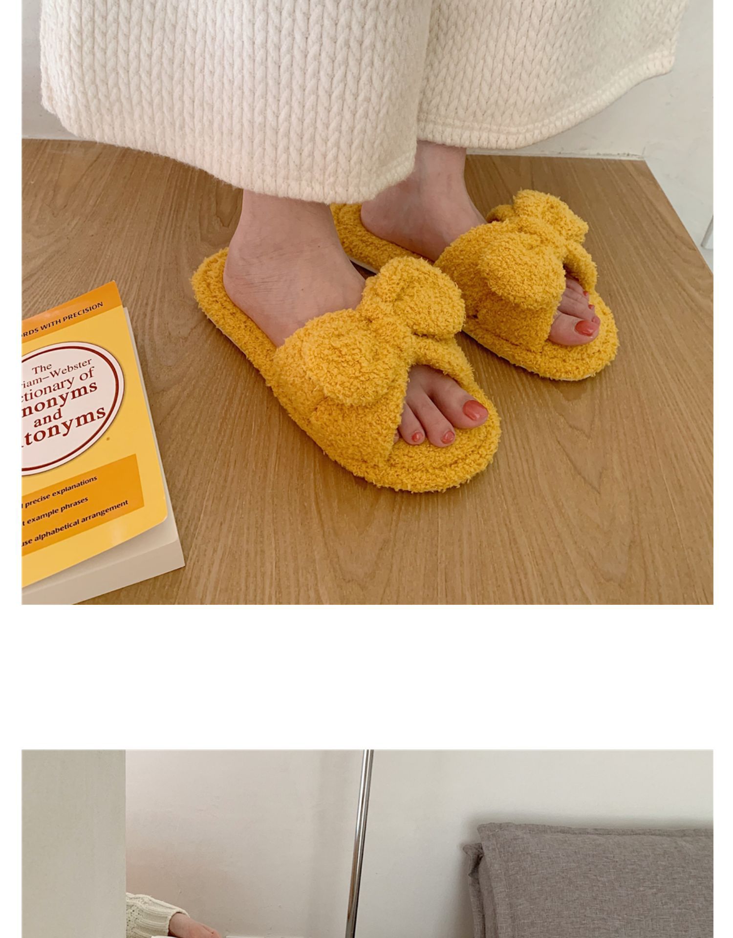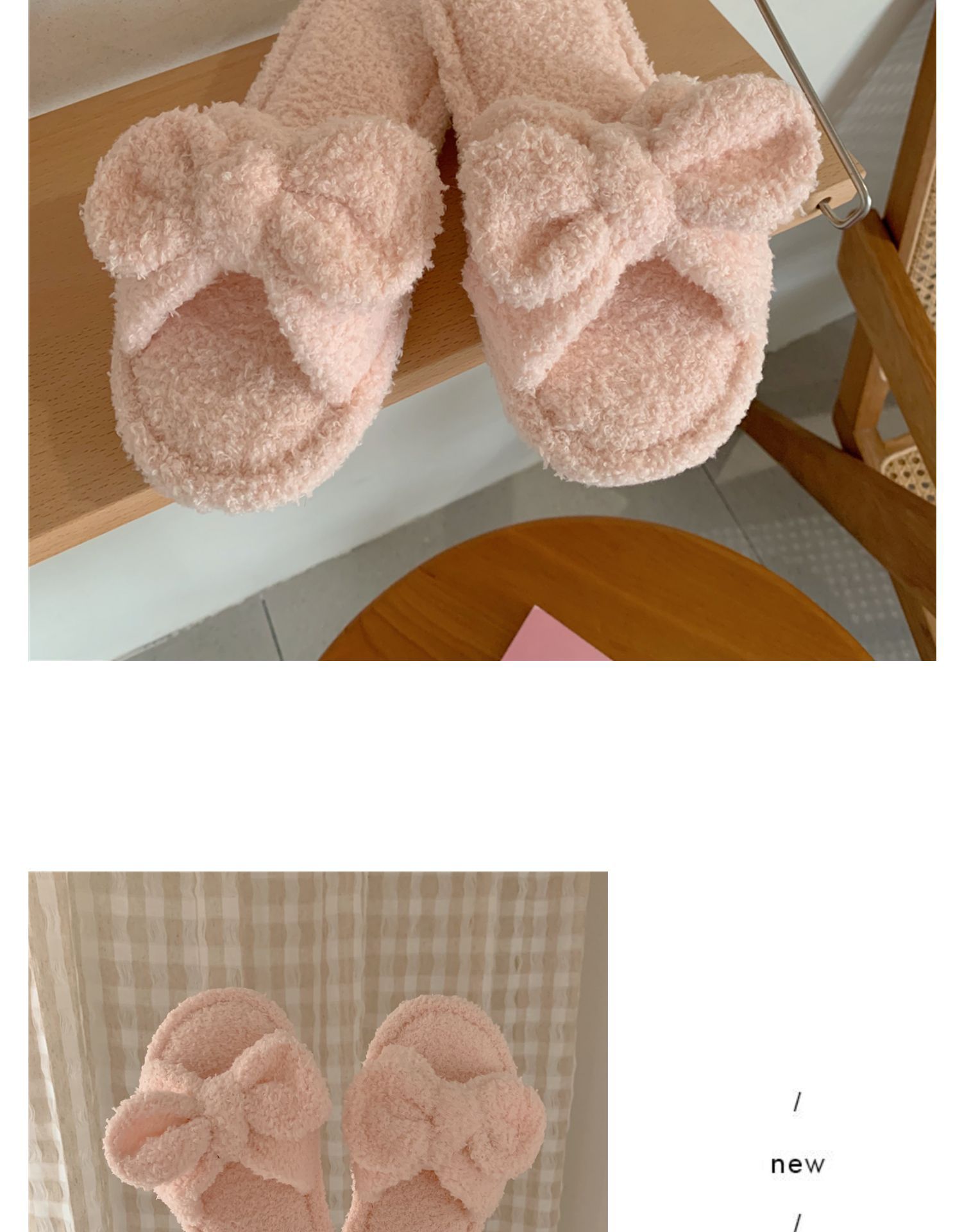 春の新型の蝶結びのスリッパの純色のかわいい少女の心の滑り止めの家庭の室内のタオルの布の1字のスリッパの女性