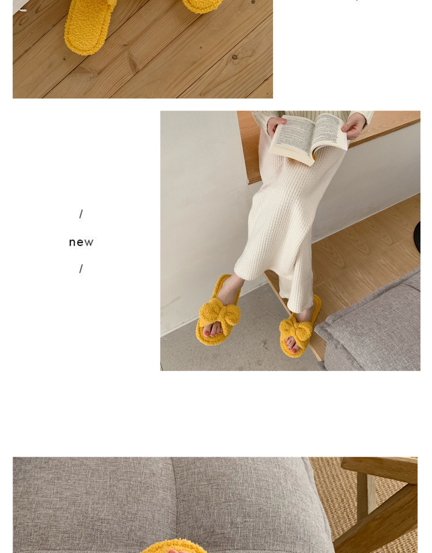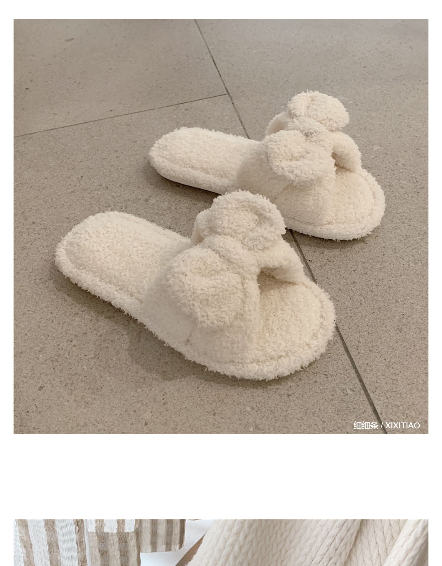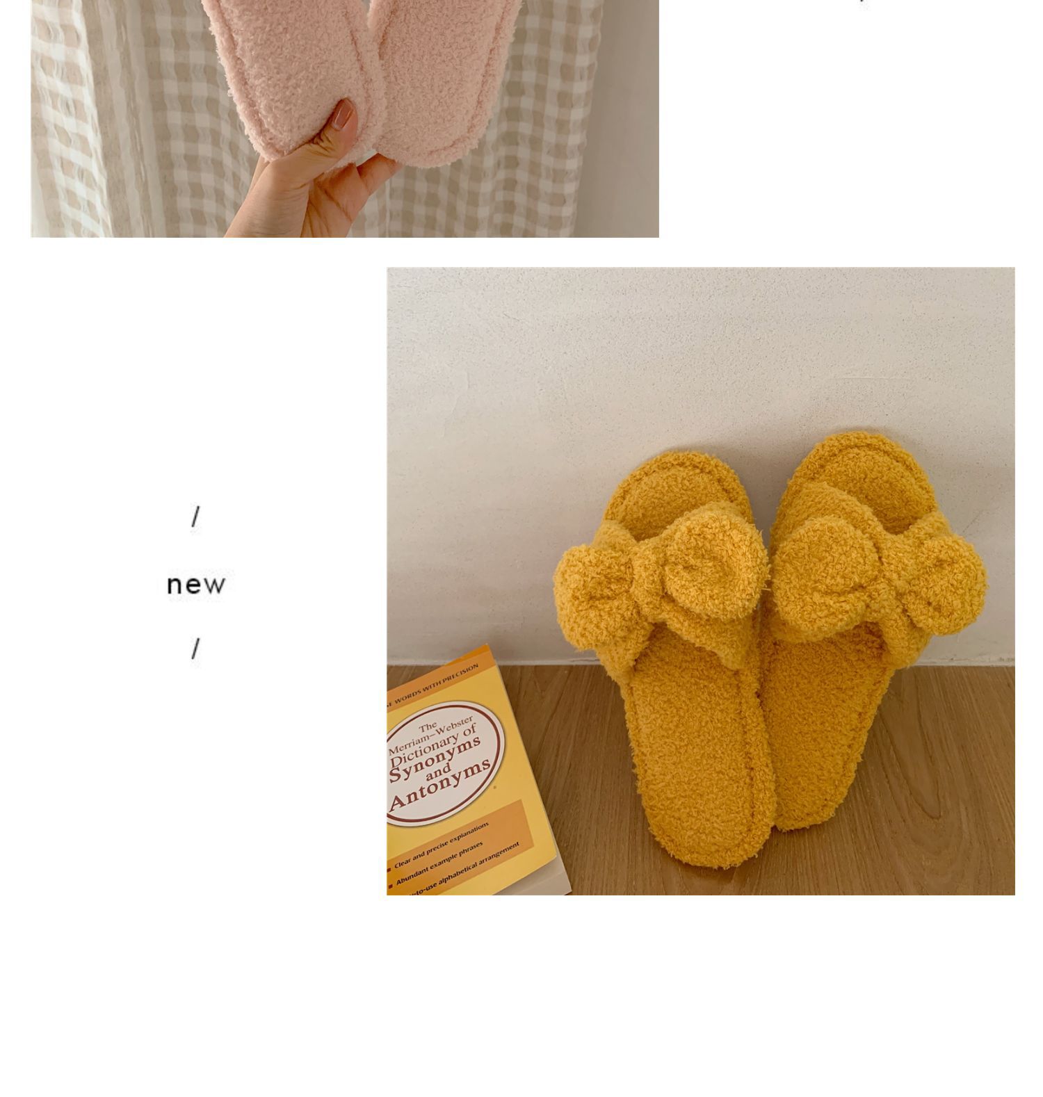 春の新型の蝶結びのスリッパの純色のかわいい少女の心の滑り止めの家庭の室内のタオルの布の1字のスリッパの女性
