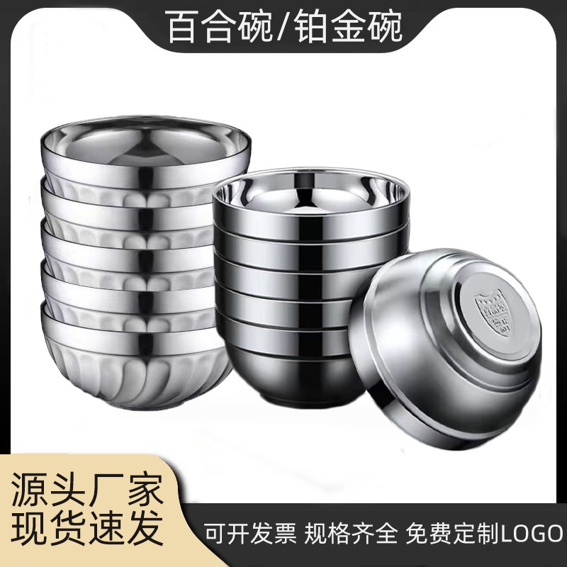 304ステンレスボウル家庭用二重スープボウル学校食堂キッチン防箔押しボウル百合ボウルプラチナボウル