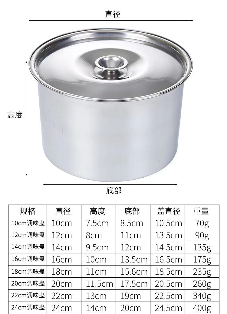 ステンレス蓋10-34cm桶蓋通用円形調味料缶蓋油鼓蓋小鍋蓋盆蓋味杯蓋