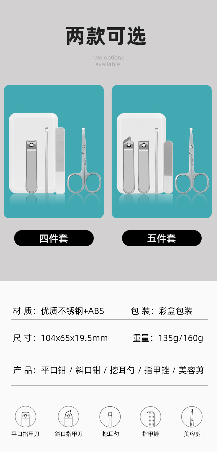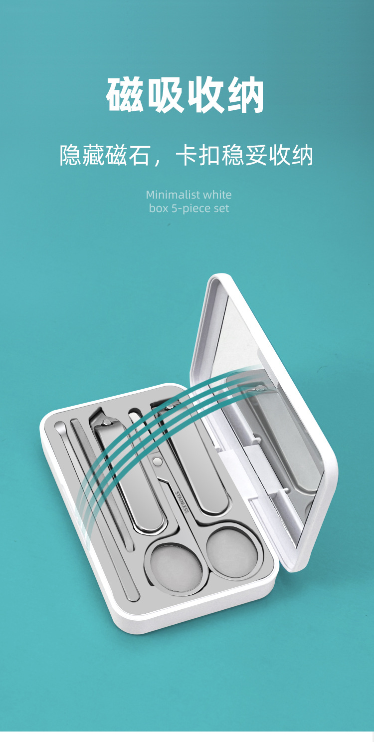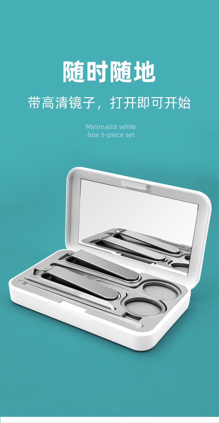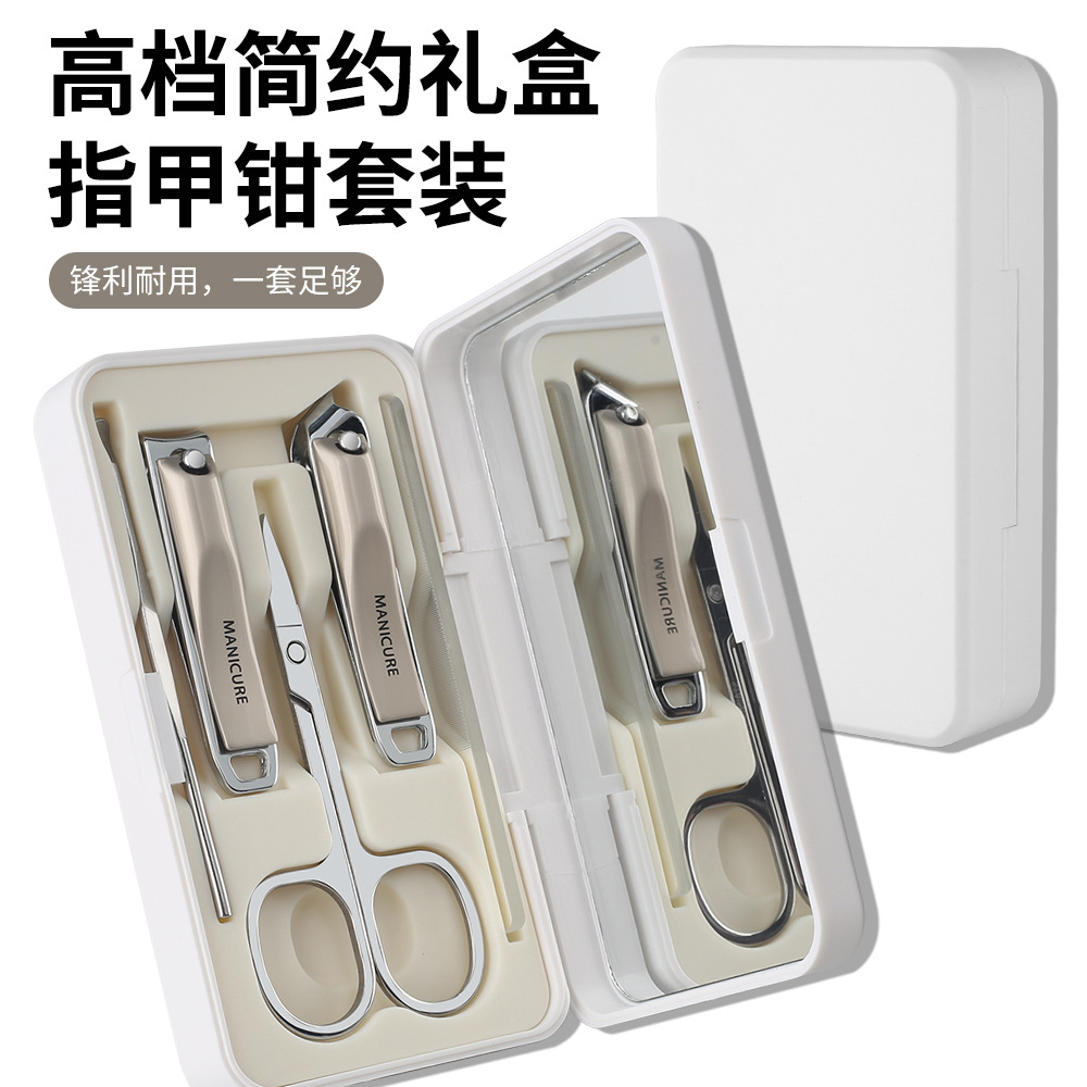 高端不锈钢指甲剪套装带镜子美甲套装锋利指甲钳修甲工具现货批发