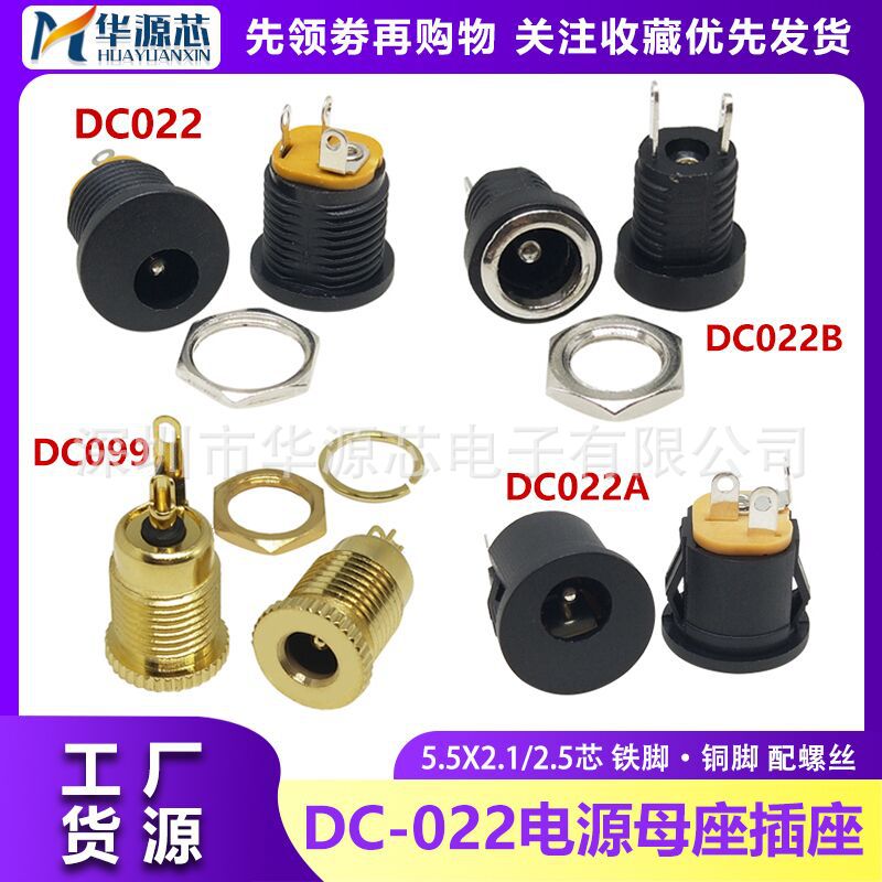 DC022A/K DC-022B 5.5*2.1/2.5 ワイヤー溶接ネジ丸穴メスソケット 2 ピン DC 電源ソケット