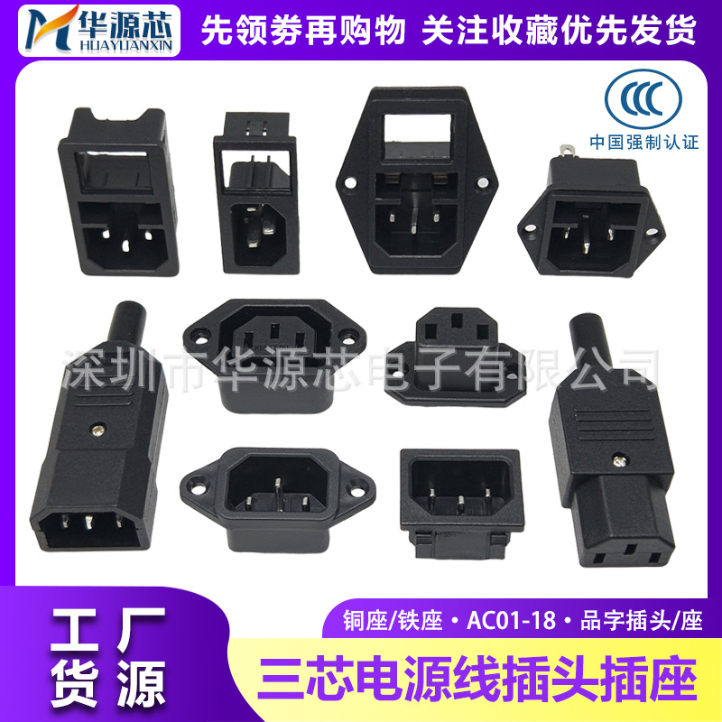 全銅AC01電源コンセント三芯品字プラグスイッチ保険座のオスとメスの接続AC-02 03 04