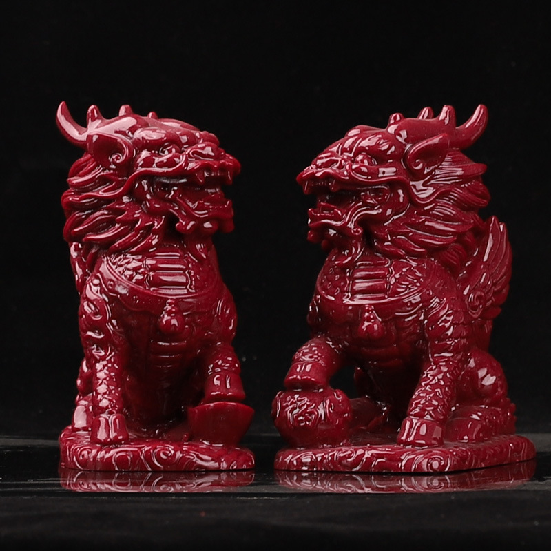 赤い朱砂麒麟の置物、如意、リビングルーム、玄関、オフィスデスクの装飾、神獣貔貅工芸品、玉器