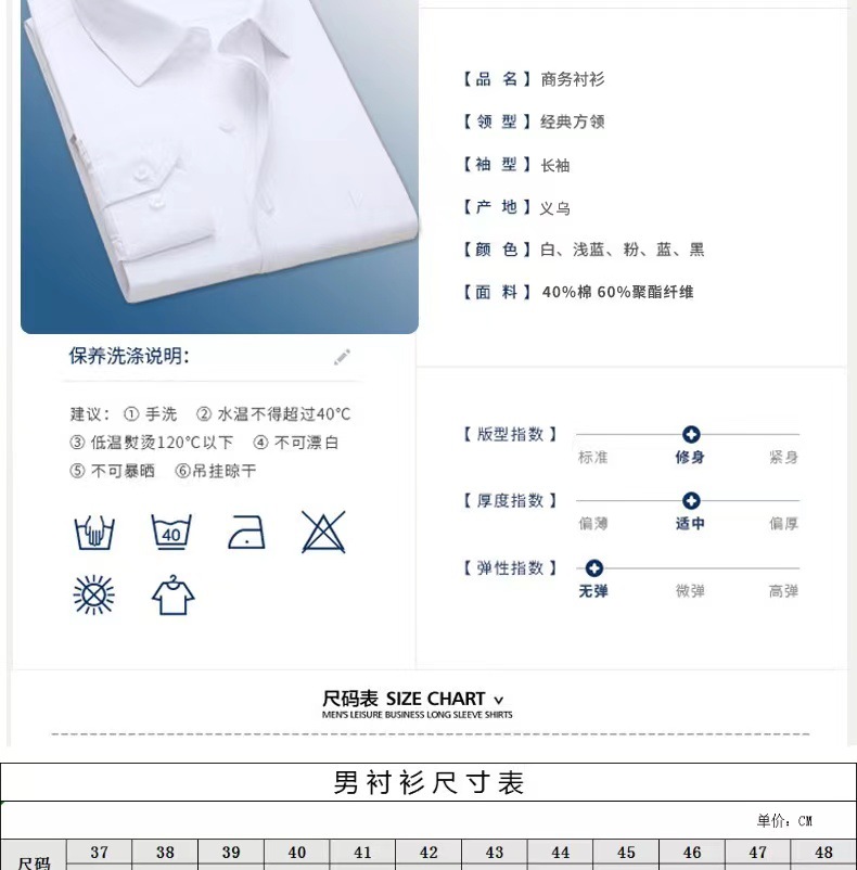 2024 夏ノンアイロンスリム韓国長袖シャツ男性保険ホテル学生シャツ仕事ドロップシッピング