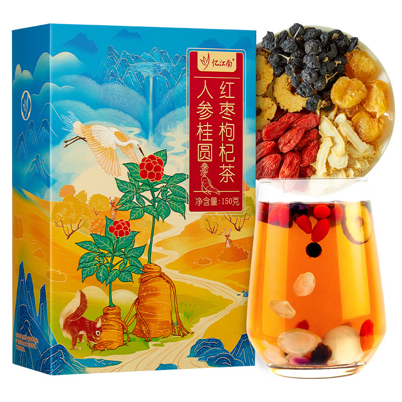 江南人参紅棗桂円枸杞茶老参片黒果枸杞長白山人参片花茶150gを記憶する