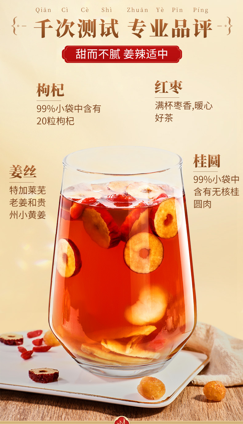 红糖姜枣茶玫瑰姜丝桂圆红枣红枸杞组合花茶姨妈茶黑糖姜枣气血茶