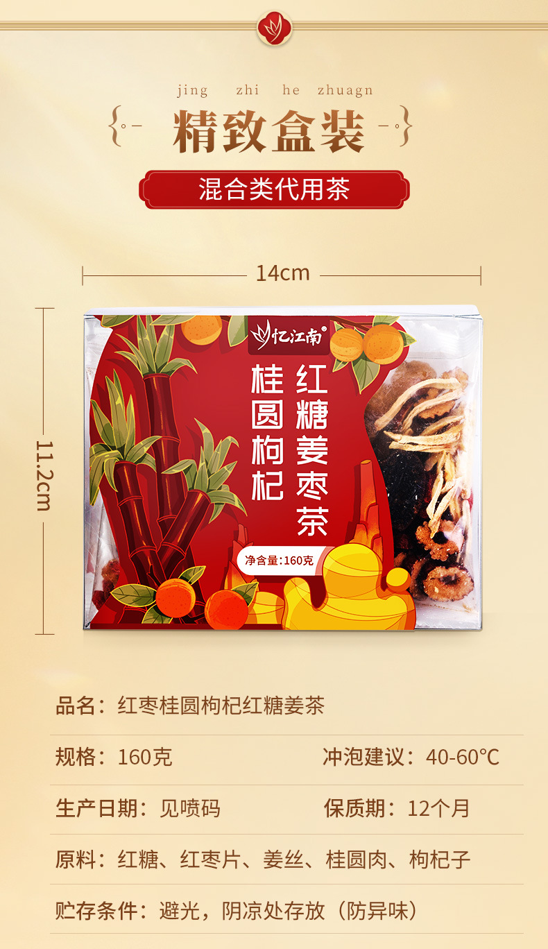 憶江南茶葉代替茶 花茶 紅糖生姜茶 龍眼枸杞 黒糖紅棗生姜棗茶 300g箱