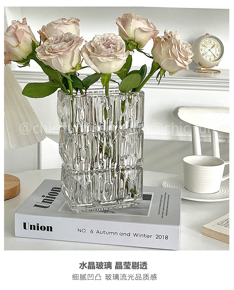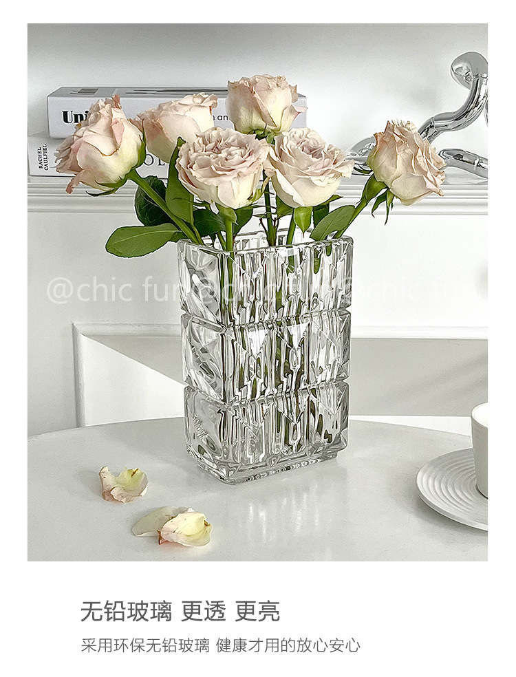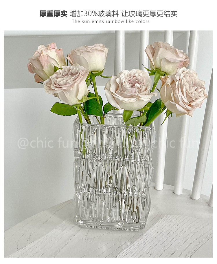 Ins風水晶ガラス花瓶透明生け花置物軽量高級客間高級感ネット赤水培花