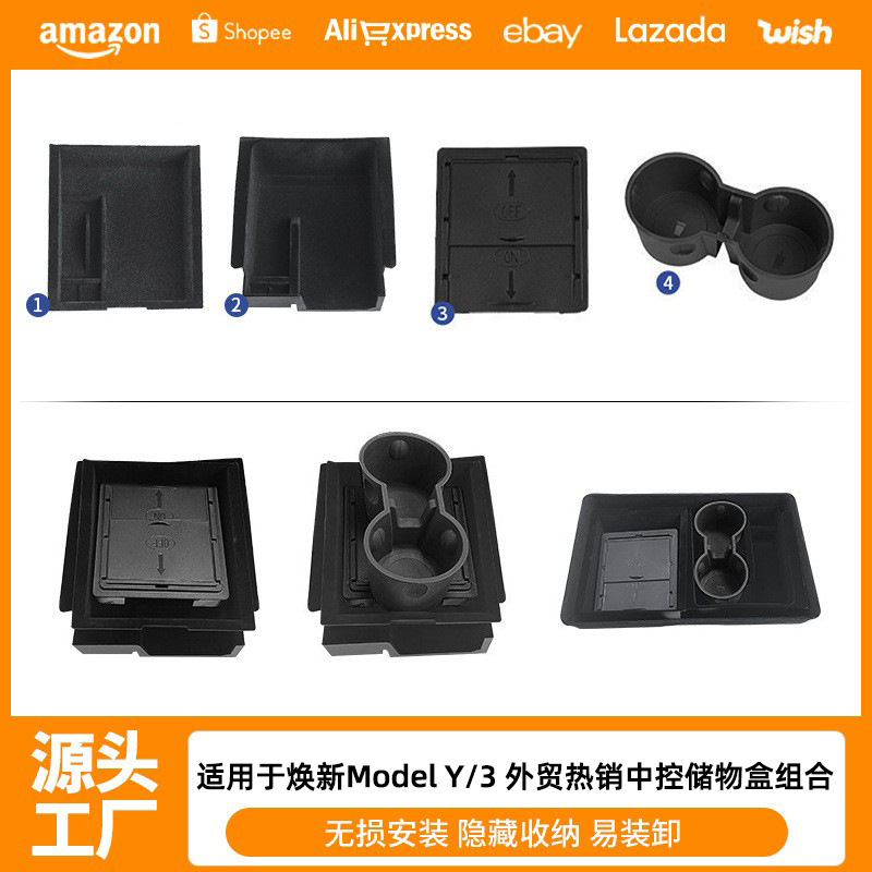 クロスボーダー適用熙新版ModelY/3テスラ中制御貯蔵箱シート下氷晶二重組み合わせ部品