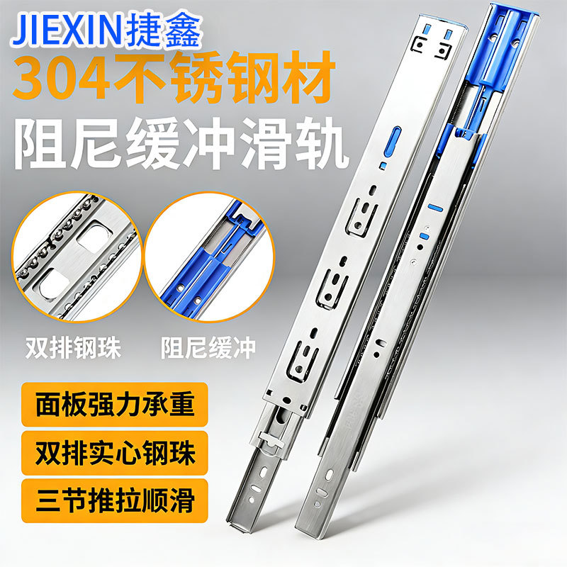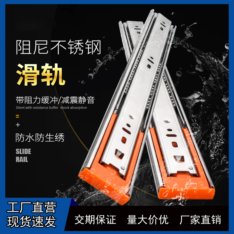 抽屉滑道轨道超厚不锈钢静音三节轨导轨滑轨衣柜阻尼缓冲反弹轨道
