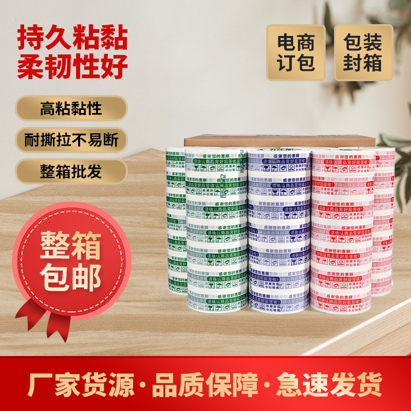 警告語封箱テープ米黄色ロゴ印字透明テープ全箱宅配便包装テープ全箱卸売り