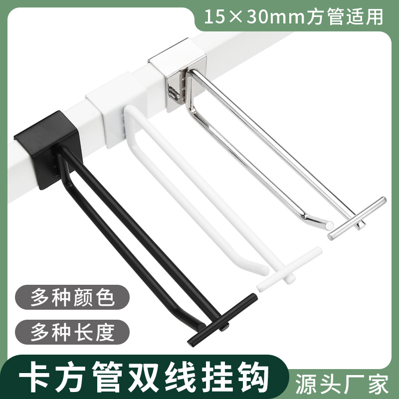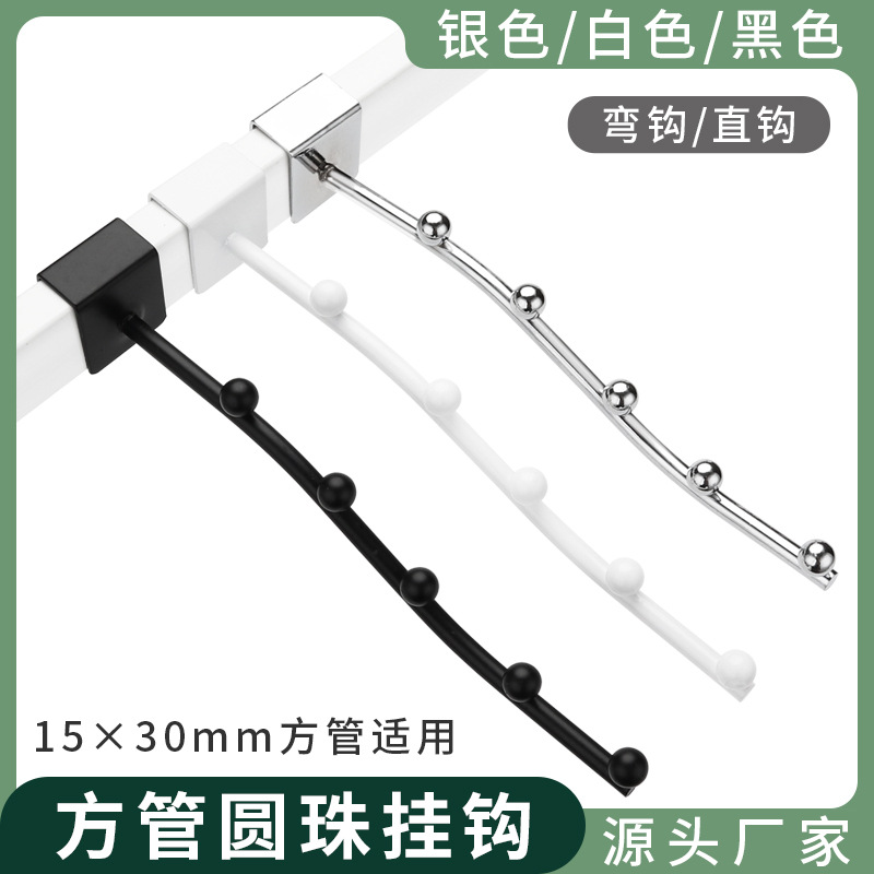 15mm角管ハンガー洋服店デパート太5珠7珠フックカード角管1.5センチ横棒直曲フック