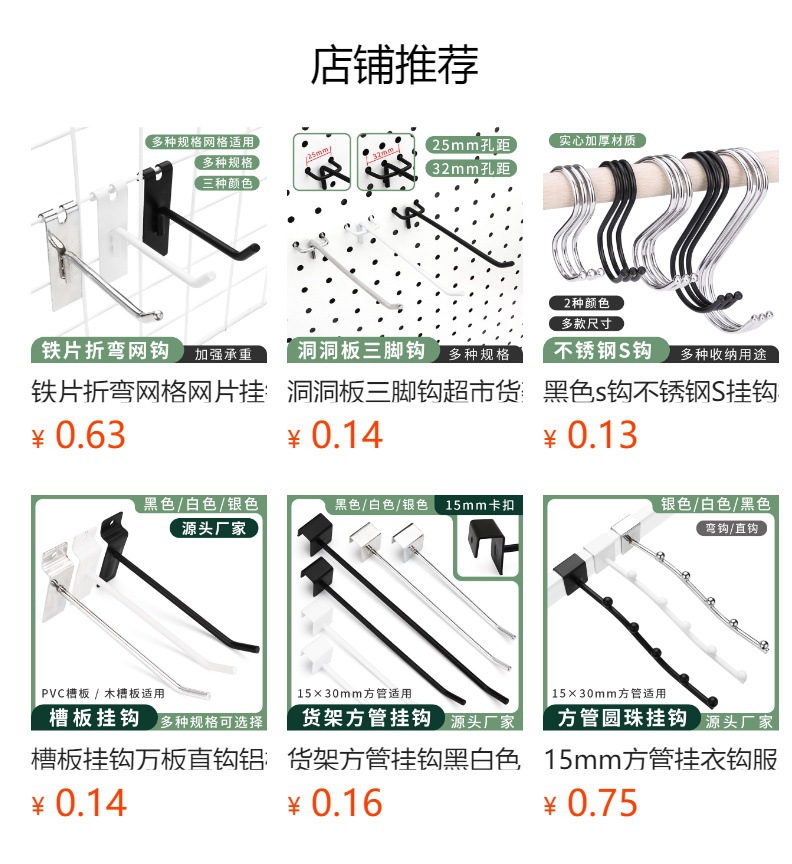 スロットボード丸珠曲げフックフックカードスロットボード7珠5珠万板ハンガーフック服装展示フック