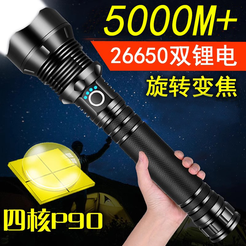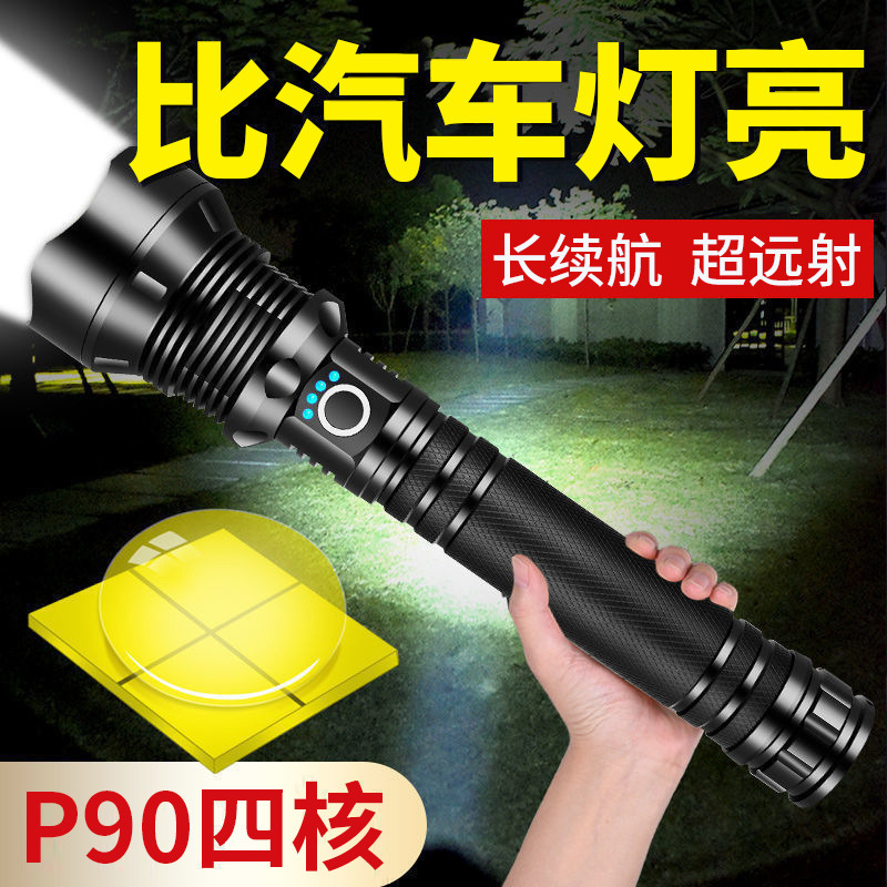 P90超亮懐中電灯四核強光充電大出力屋外遠射家庭用パトロールled照明サーチライト