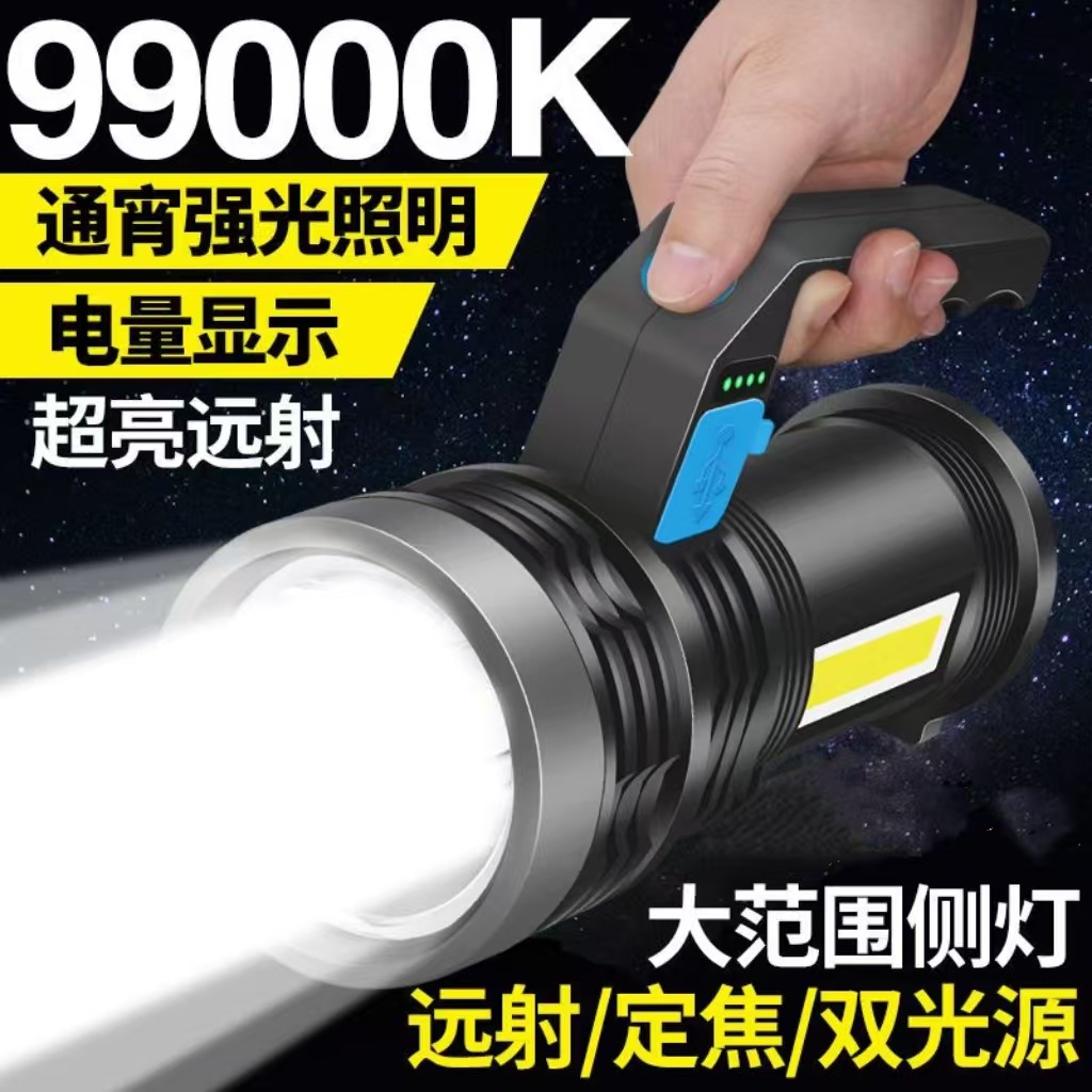 クロスボーダーLED手提げライトサイドライト付き強光充電可能屋外超亮遠射懐中電灯超長リチウム電鉱灯