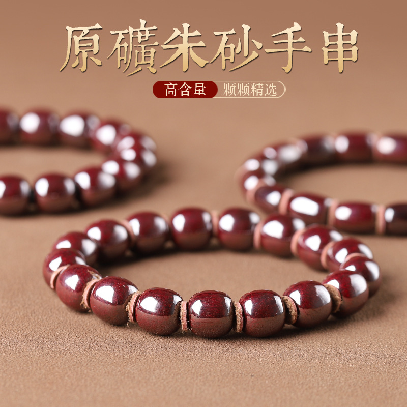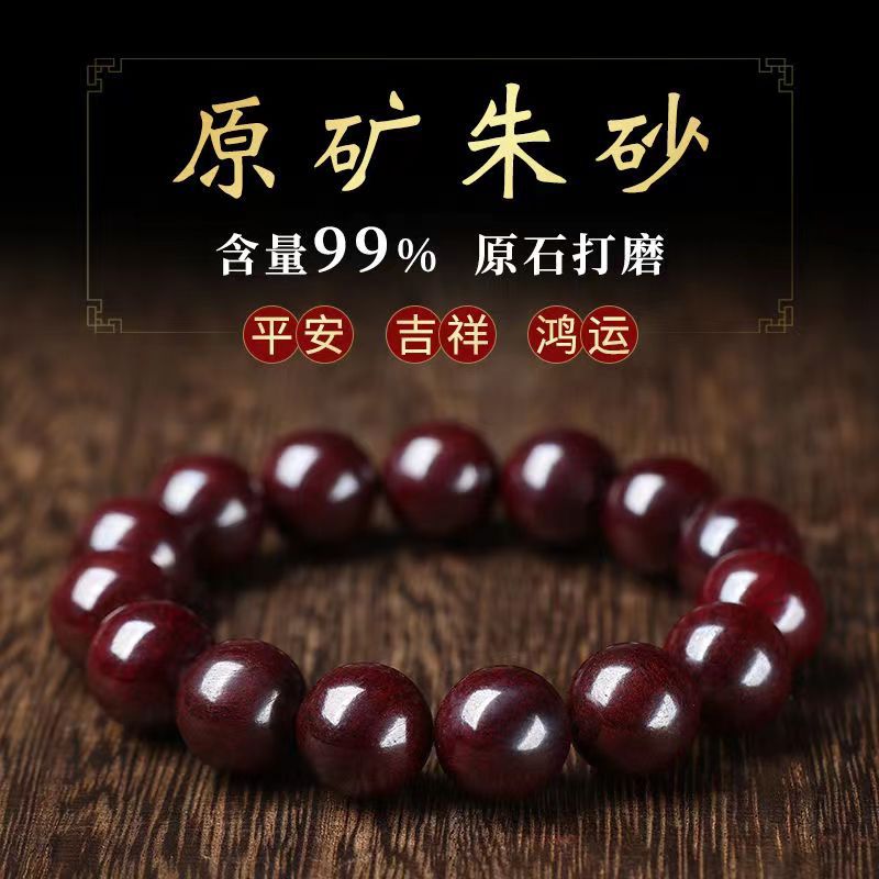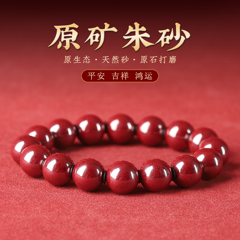 卸売り朱砂ブレスレット辰砂手串高含有量仏珠ブレスレット本命年招財納福首飾品