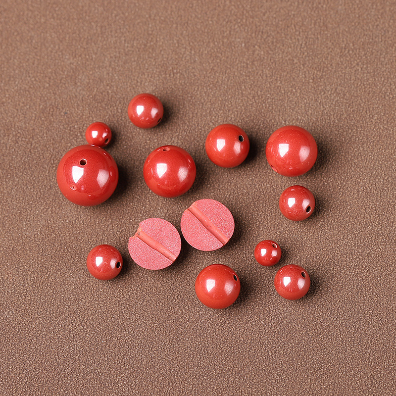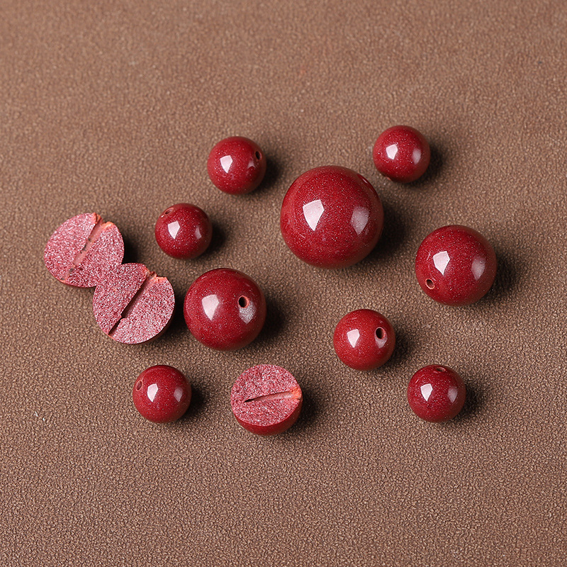 天然原鉱保真高含有量朱砂珠帝王砂半製品散珠大赤色単珠転運珠