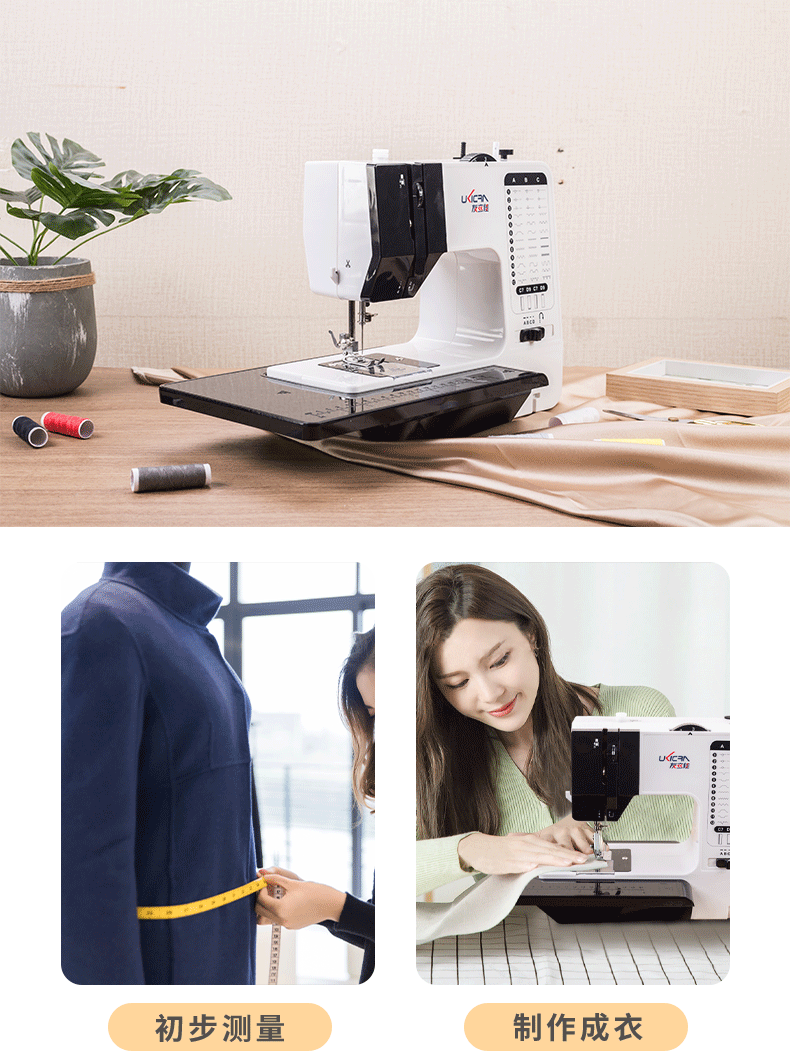 クロスボーダー新製品2025年新型818家庭用多機能45ライン二本針ミニミシン、エッジロックとボタンホール機能付き