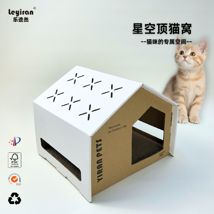 段ボール製猫ハウス、猫爪とぎ板、猫用ヴィラ、猫の家、紙製ボックス、猫用紙箱、四季通用