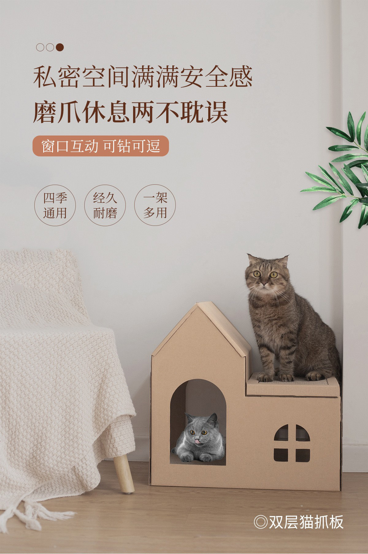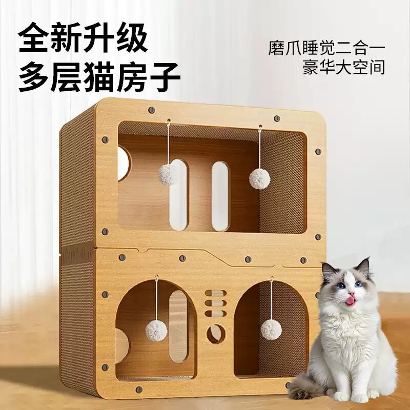 猫抓板耐磨不掉屑猫咪猫爪板猫屋猫窝一体耐抓猫房纸箱屋四季通用