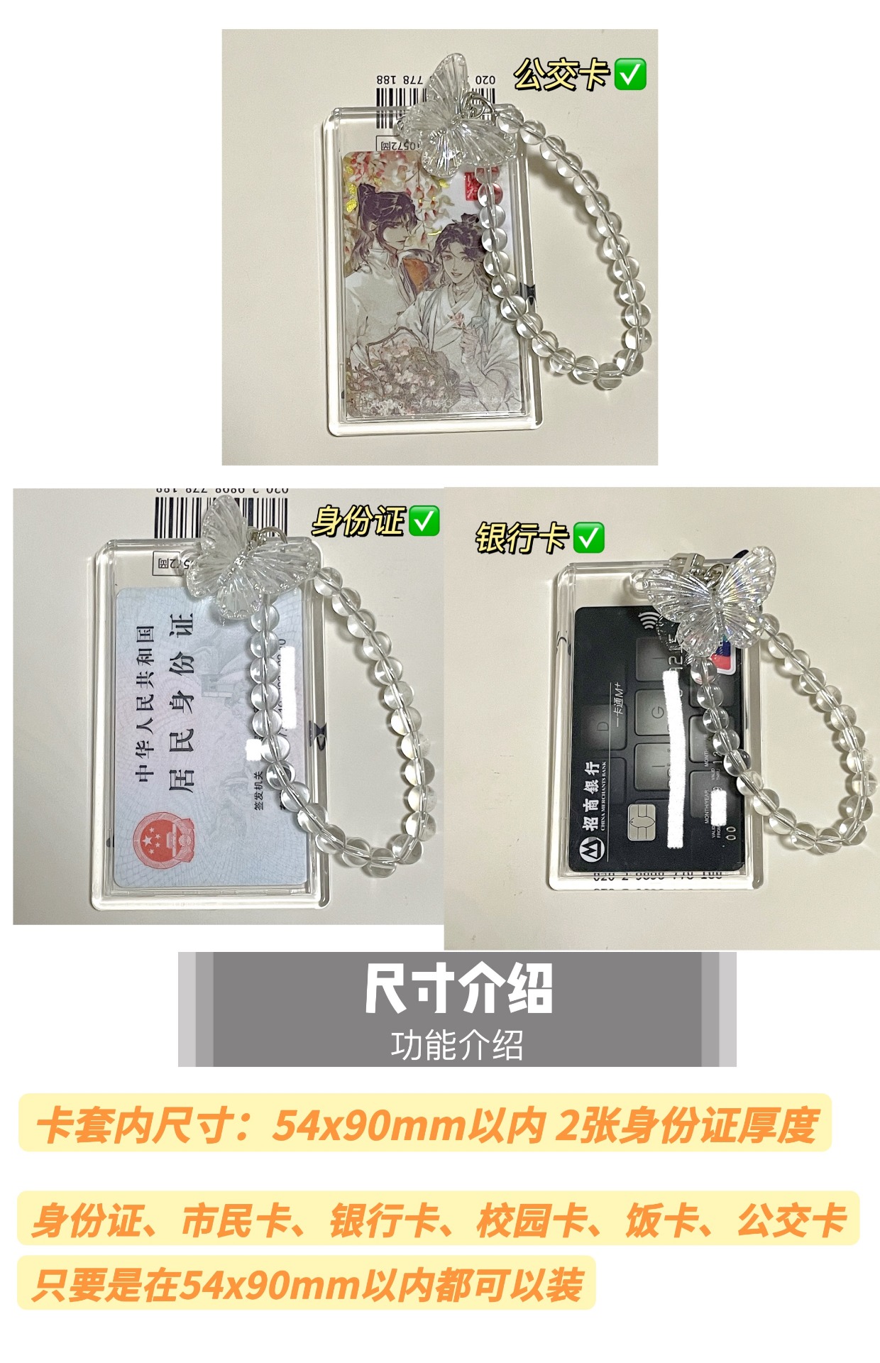 水晶の蝶のキーホルダーのスライドカバーの透明なアクリルのカードのセットの両面の小さいカードのバスのカードの身分証の卸売り