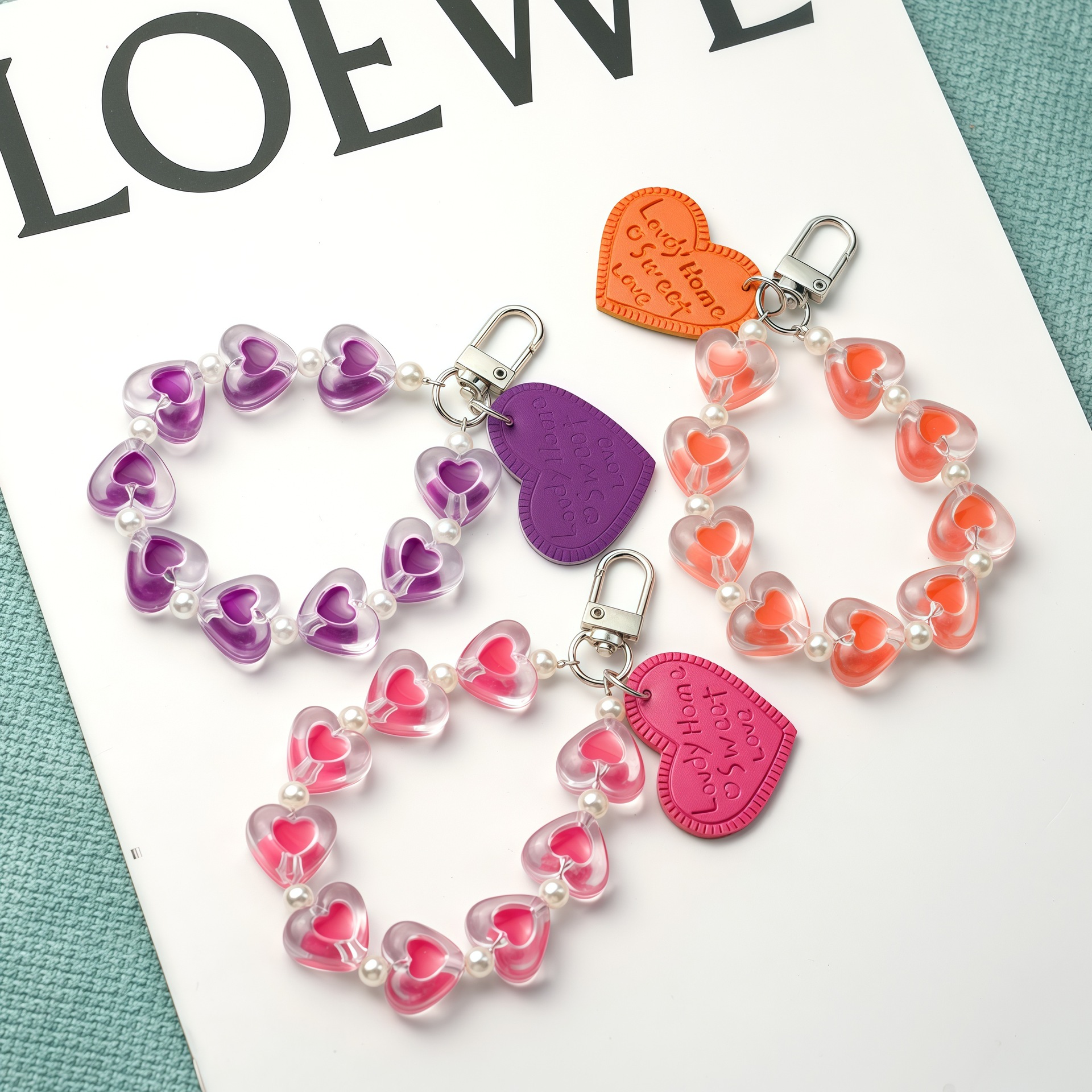 創意的な愛の手のチェーンのキーチェーンのペンダントのファッションの桃の心のアルファベットの皮革の透感の部品のかわいいかばんの装飾