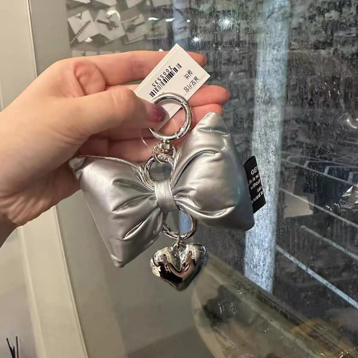 韓系insの新型の甘い妹の真珠の蝶結びの銀の愛のペンダントのキーホルダーはブルートゥースのイヤホンのペンダントを掛けます。