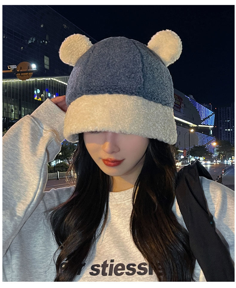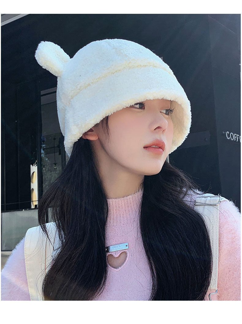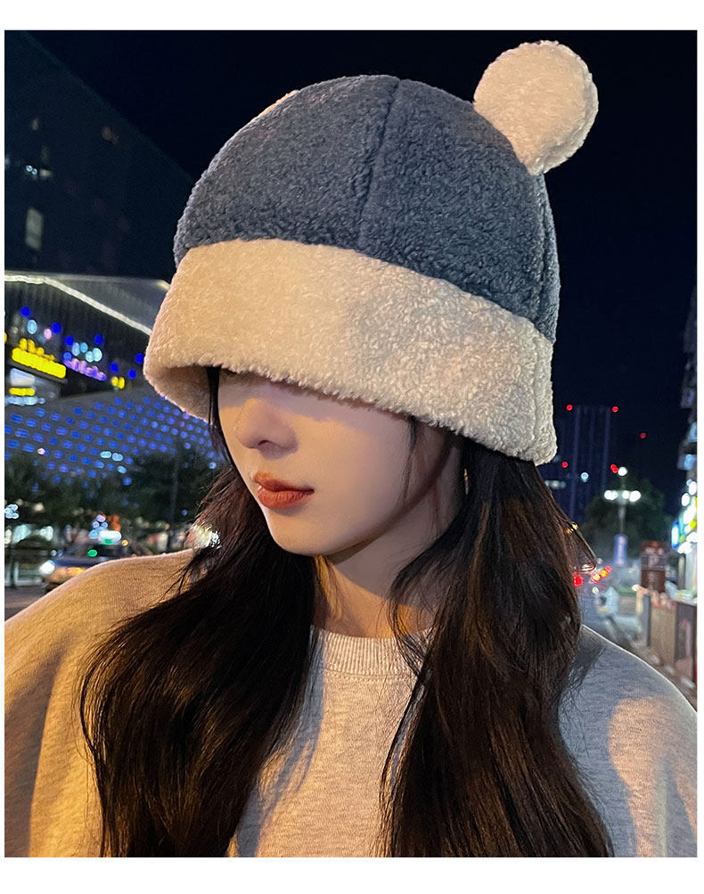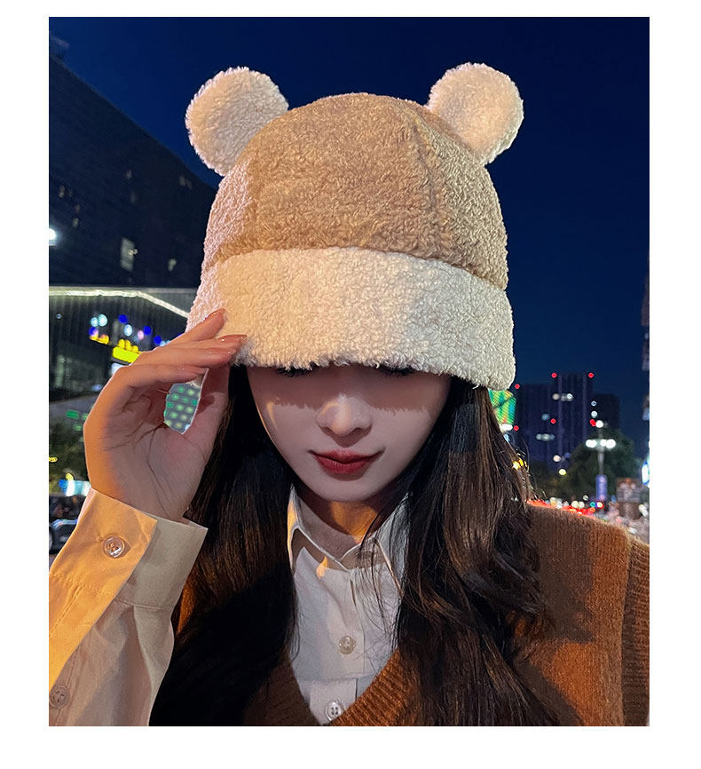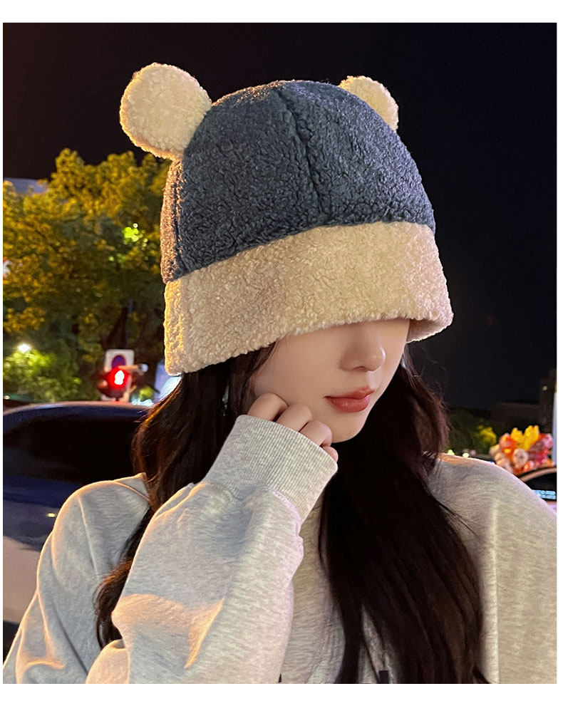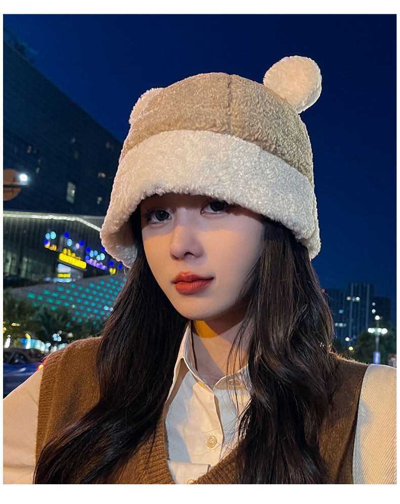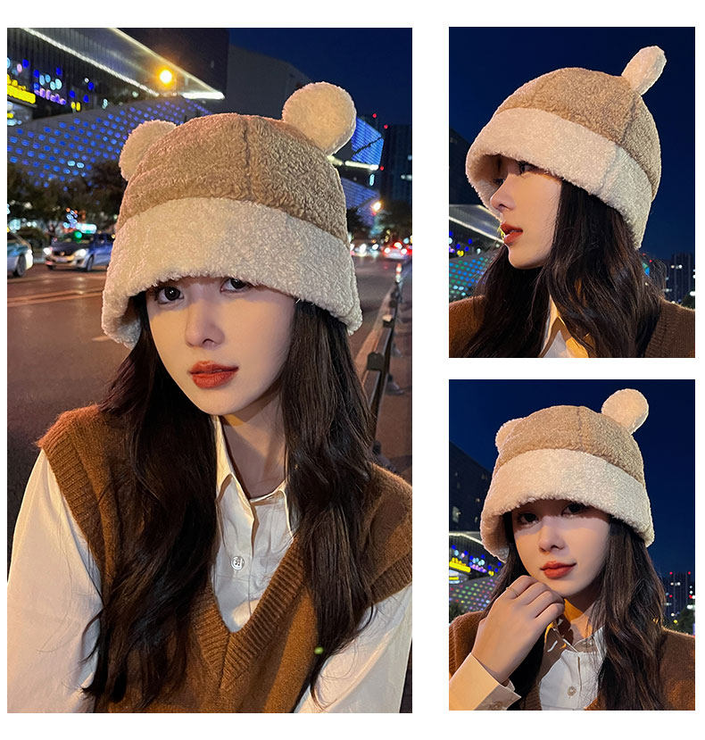 秋冬の日の韓国版のかわいい羊のぬいぐるみの耳の漁師の帽子の子供の保温は厚い盆の帽子のネットのネットの赤い学生の冷たい帽子を厚くします。