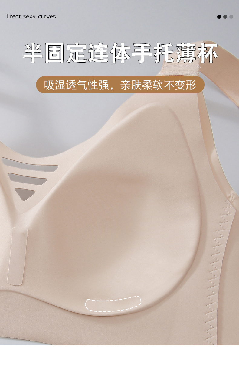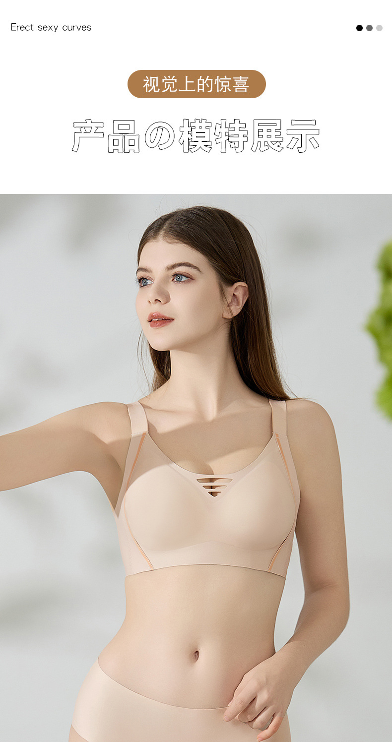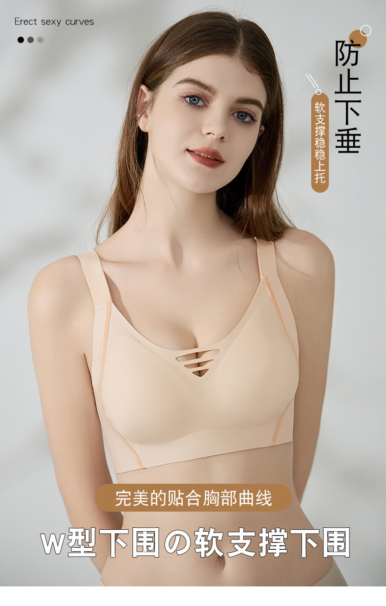 シームレスゼリーストリップ巨乳露出小さなブラジャー中空セクシーな下着フルカップ薄型半固定洗濯機で洗えるブラジャー