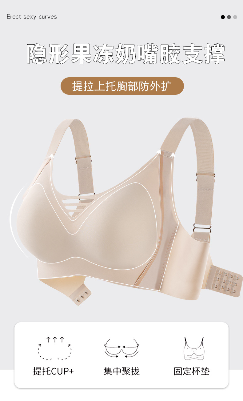 大码内衣女无痕提拉软糯果冻胶软支撑上托防下垂固定杯舒适文胸罩