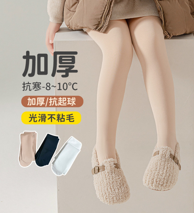女の子の水光沢ソックス素足ソックスアーティファクト秋と冬プラスベルベット肥厚子供の肌の色パンストレギンストレンディな