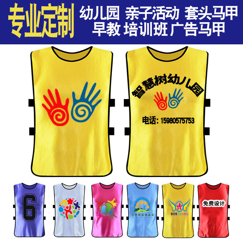 子供用全身プリント幼稚園保育用ベスト、カスタムトレーニング対戦用ベスト、青少年活動用ベスト、ロゴ入り