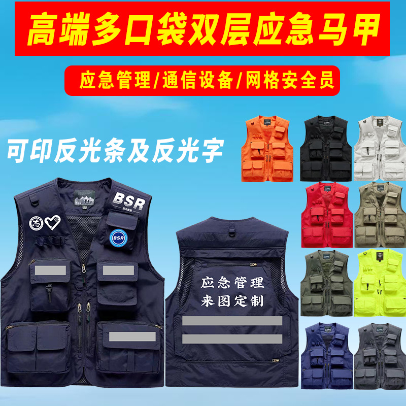 ハイエンド緊急馬甲多ポケットカスタムロゴグリッド安全員通信工装撮影反射ベスト