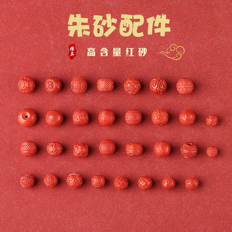本店所有朱砂全部保真,实事求是,朱砂散珠低含量的珠子表面没有星光点,包括横截面内部没有矿闪,高含量的有很多星光点,