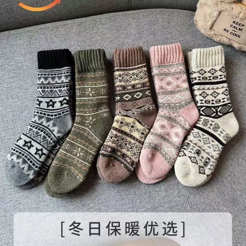 冬季袜子加厚款袜子袜子复古民族风情侣款东北保暖中筒毛圈袜加厚