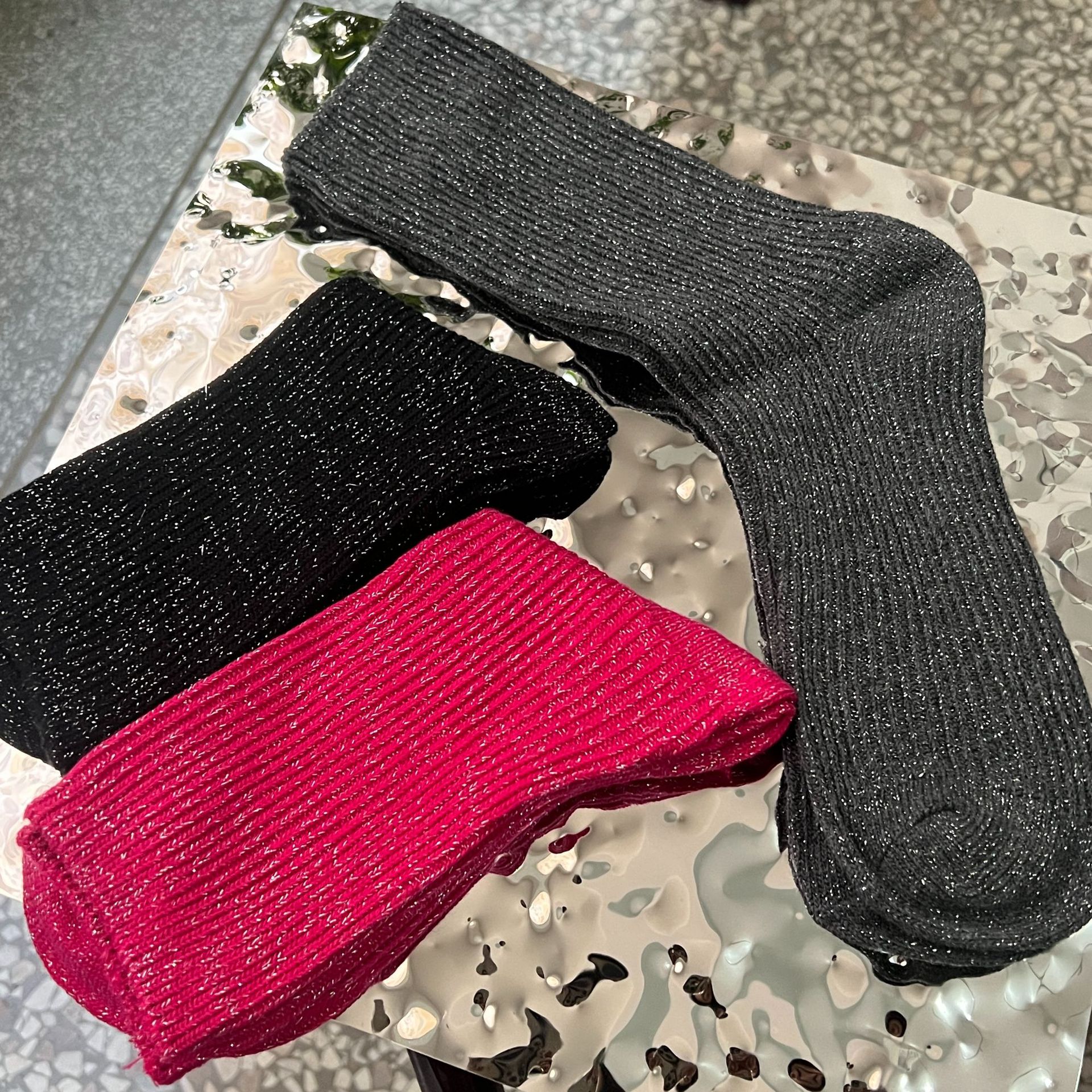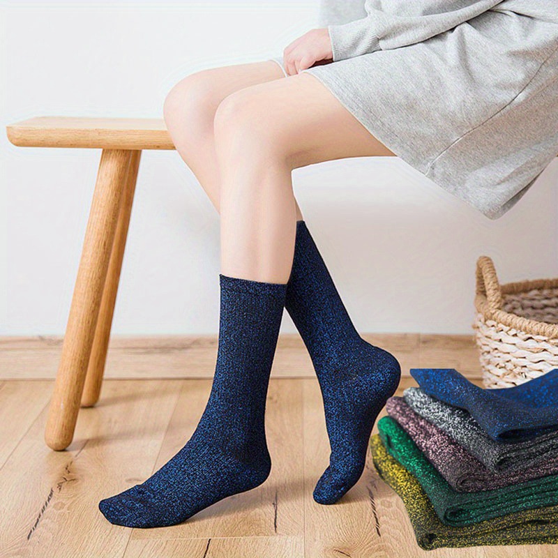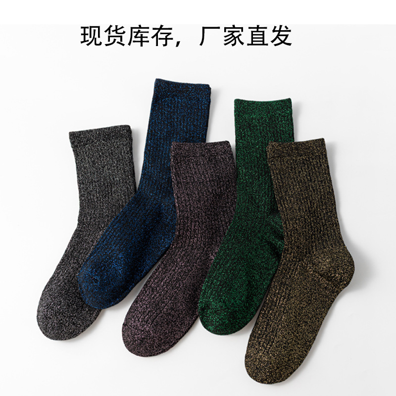 靴下の女性の軽い豪華な金銀糸の純色の中筒の靴下の明るい糸の新型の女性の靴下の保温ins秋冬の新型のファッションの金