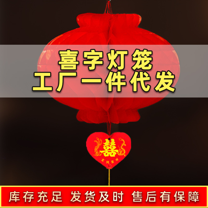 工場直送の「喜」の文字入り平安提灯、小さな赤いプラスチック紙の吊り飾り、結婚式、庭の祝賀、屋外装飾