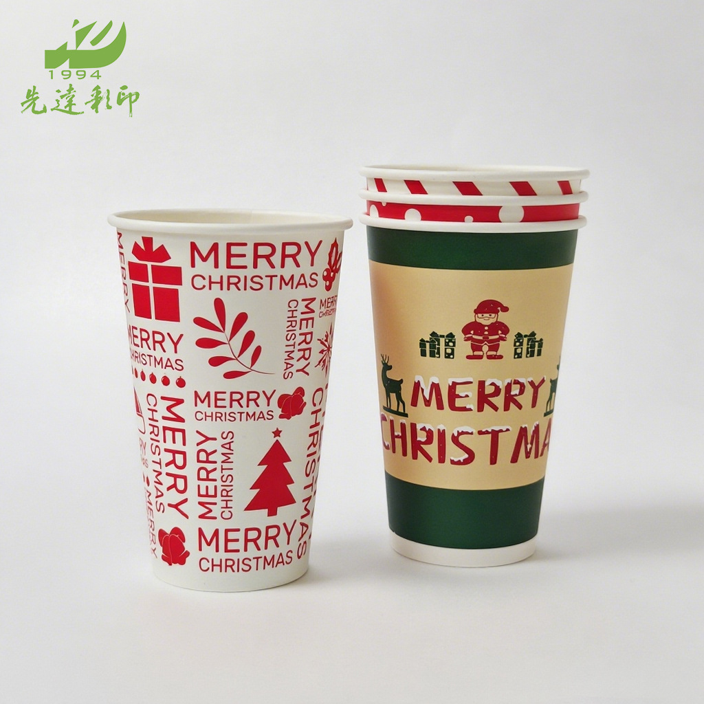 カスタマイズされたホリデー使い捨て紙コップクロスボーダー特別クリスマスコーラコーヒーカッププリントロゴ厚みのある単層カップ
