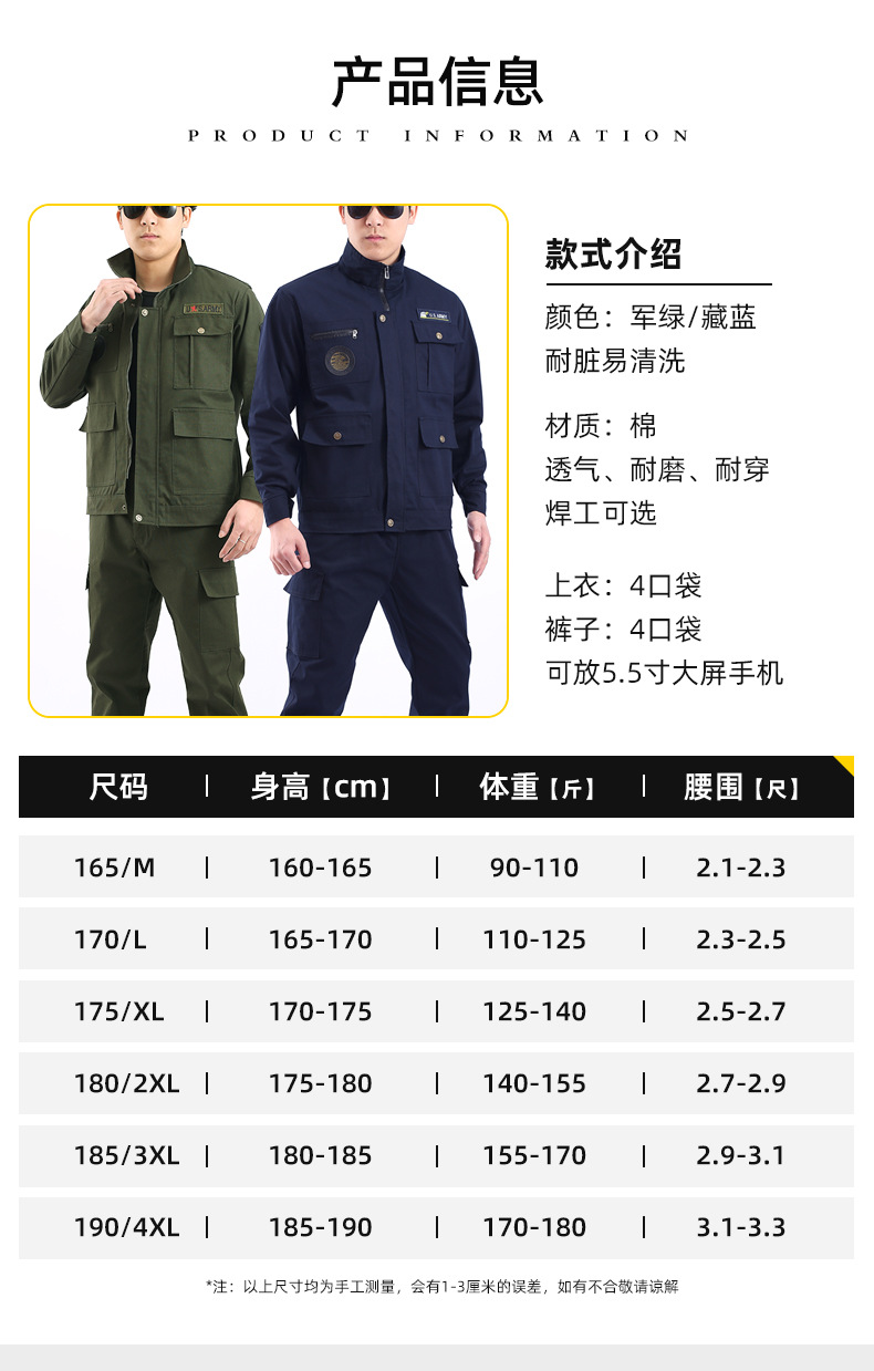 純綿電気溶接作業服セット男性春秋厚厚耐摩耗溶接工自動車修理作業服男性労働保護作業服