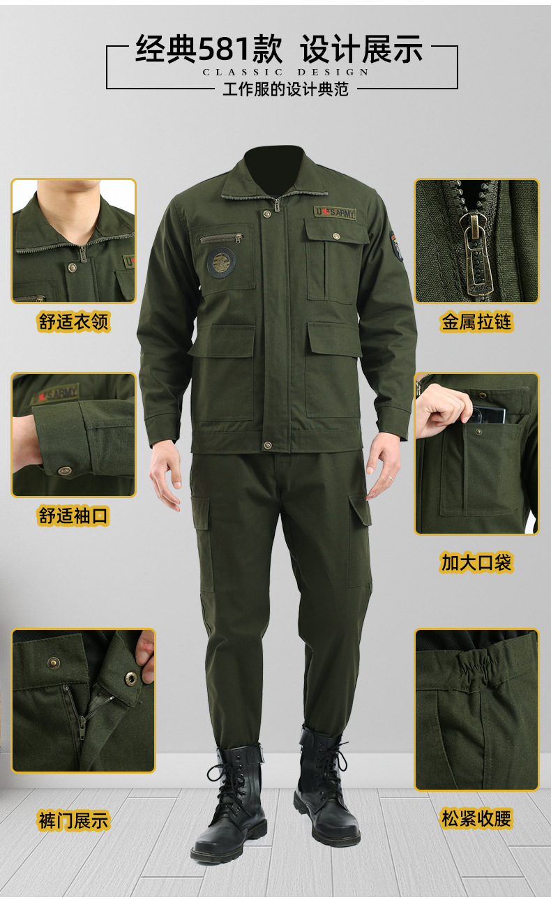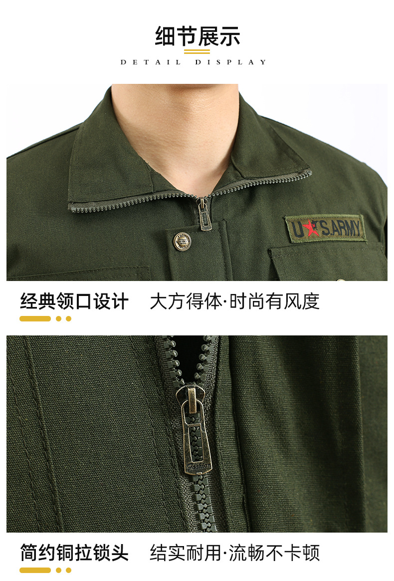 作業服セット男電気溶接工防熱建築工事現場の自動車修理耐摩耗性耐汚れ軍緑労働保険作業服