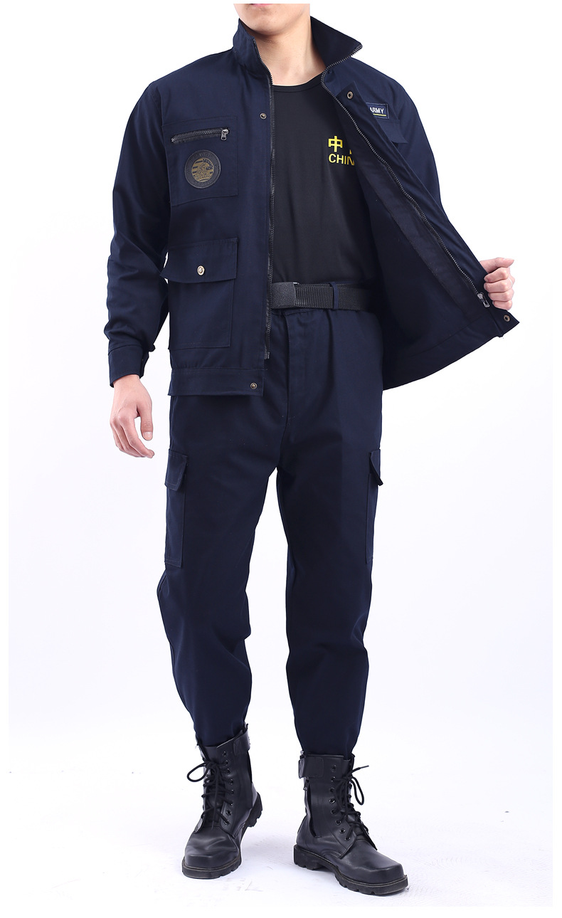春と秋の作業服のセットを厚くして、耐摩耗性の耐汚れ性のある労働保険服を建築します。