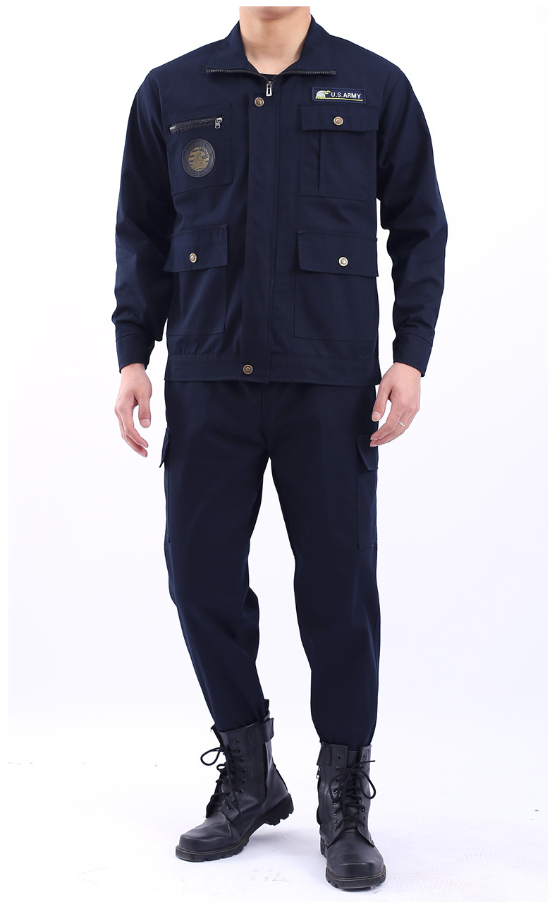 春と秋の作業服セットの男性労働保険の単一の電気溶接工の耐摩耗性工事現場の仕事服の卸売り工場