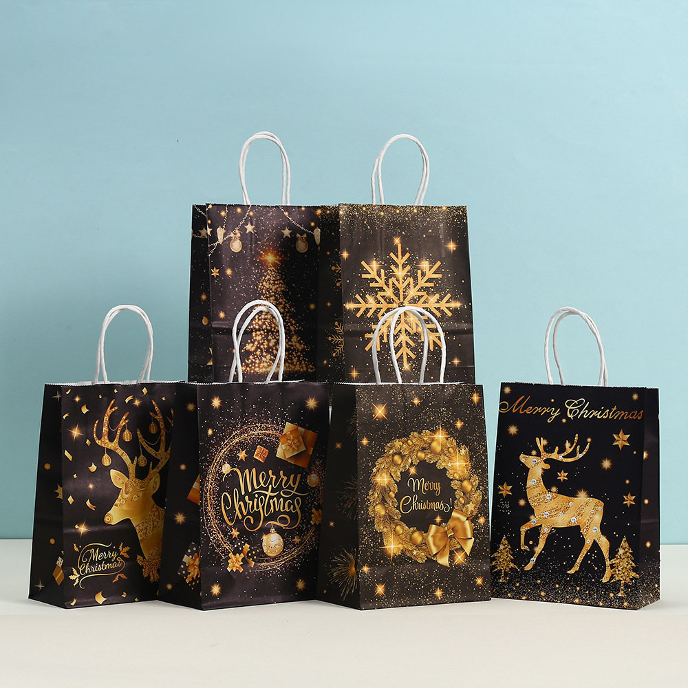国境を越えた黒いクリスマス包装袋クラフト紙袋パーティーキャンディー手提げギフト袋卸売りプリント外売り袋